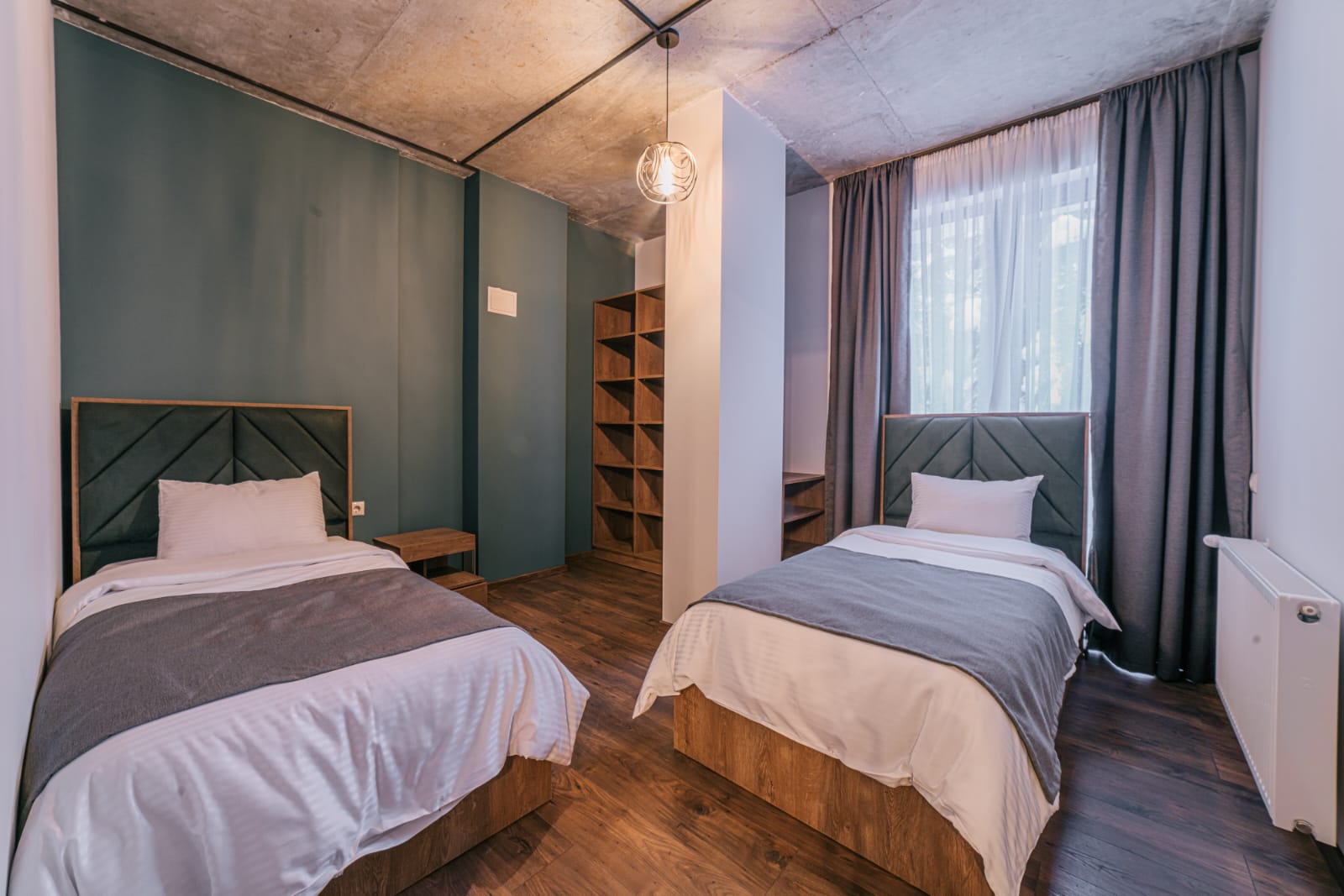 Стильный просторный Люкс с двумя отдельными спальнями (75 м², до 5 человек) в современном отеле.