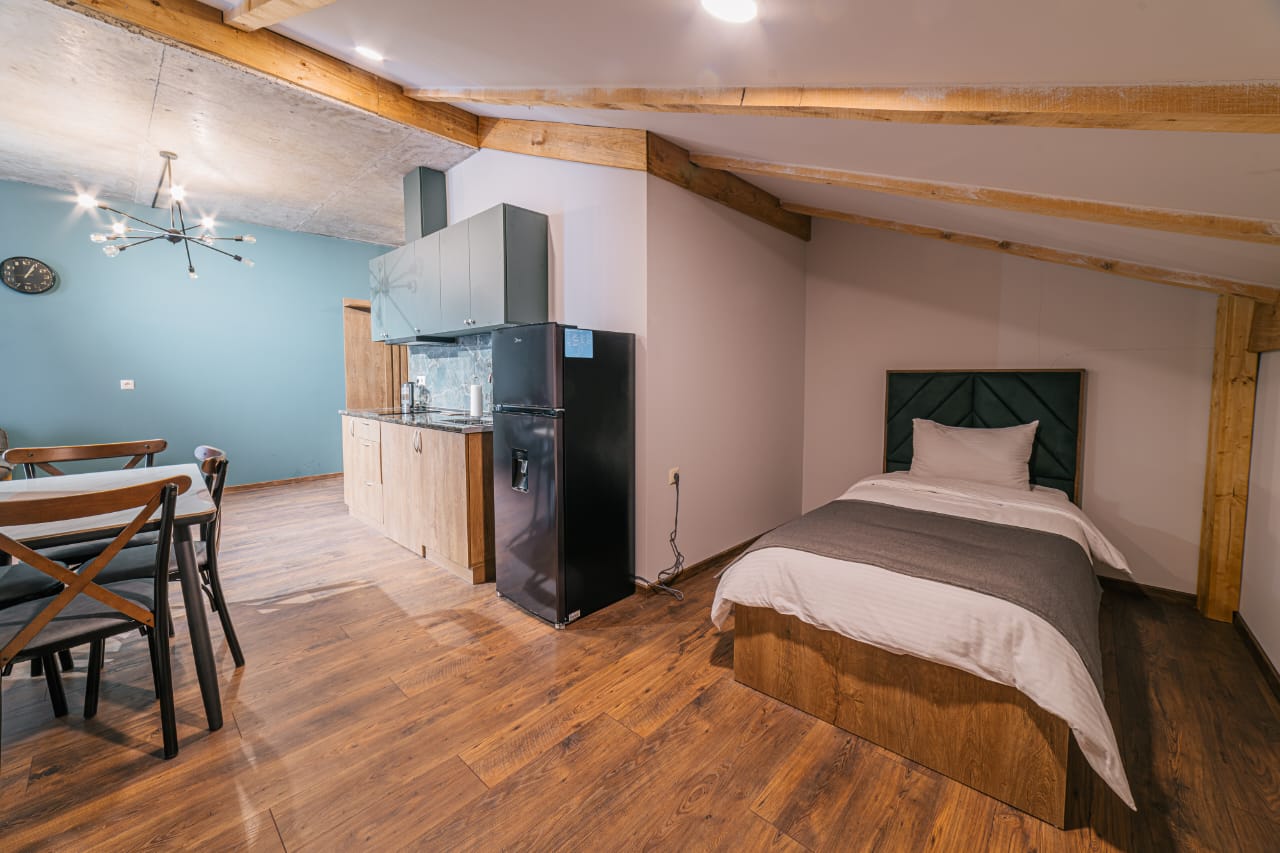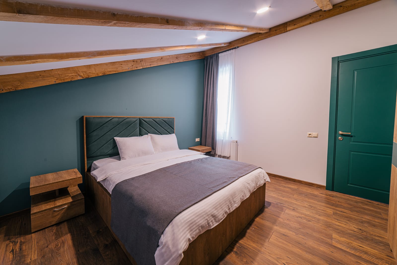 Люкс с двумя спальнями — самый просторный (целых 75 м²), до 5 гостей, на 100 лари дороже.
