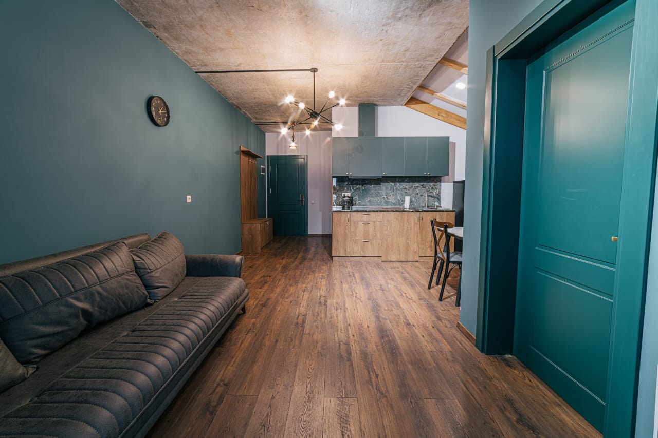 Люкс с одной спальней — 70 м² Просторный и тёплый номер с гостиной и отдельной спальней. Подойдёт для семьи или компании до 4 человек, которые ценят комфорт и уют.