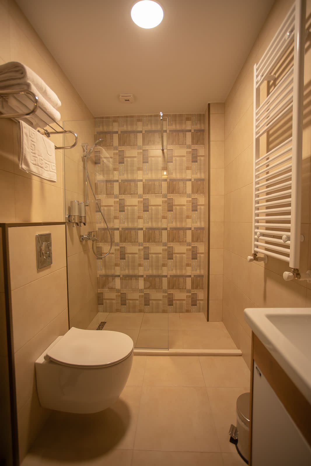 🚿 Ванная с душем, феном, тапочками и туалетными принадлежностями.